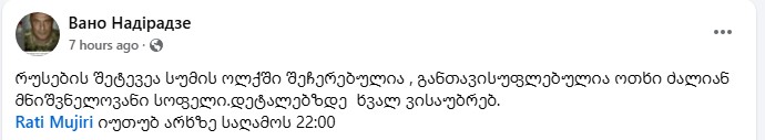 რა პოსტი დაწერა ვანო ნადირაძემ გარდაცვალებამდე 7 საათით ადრე