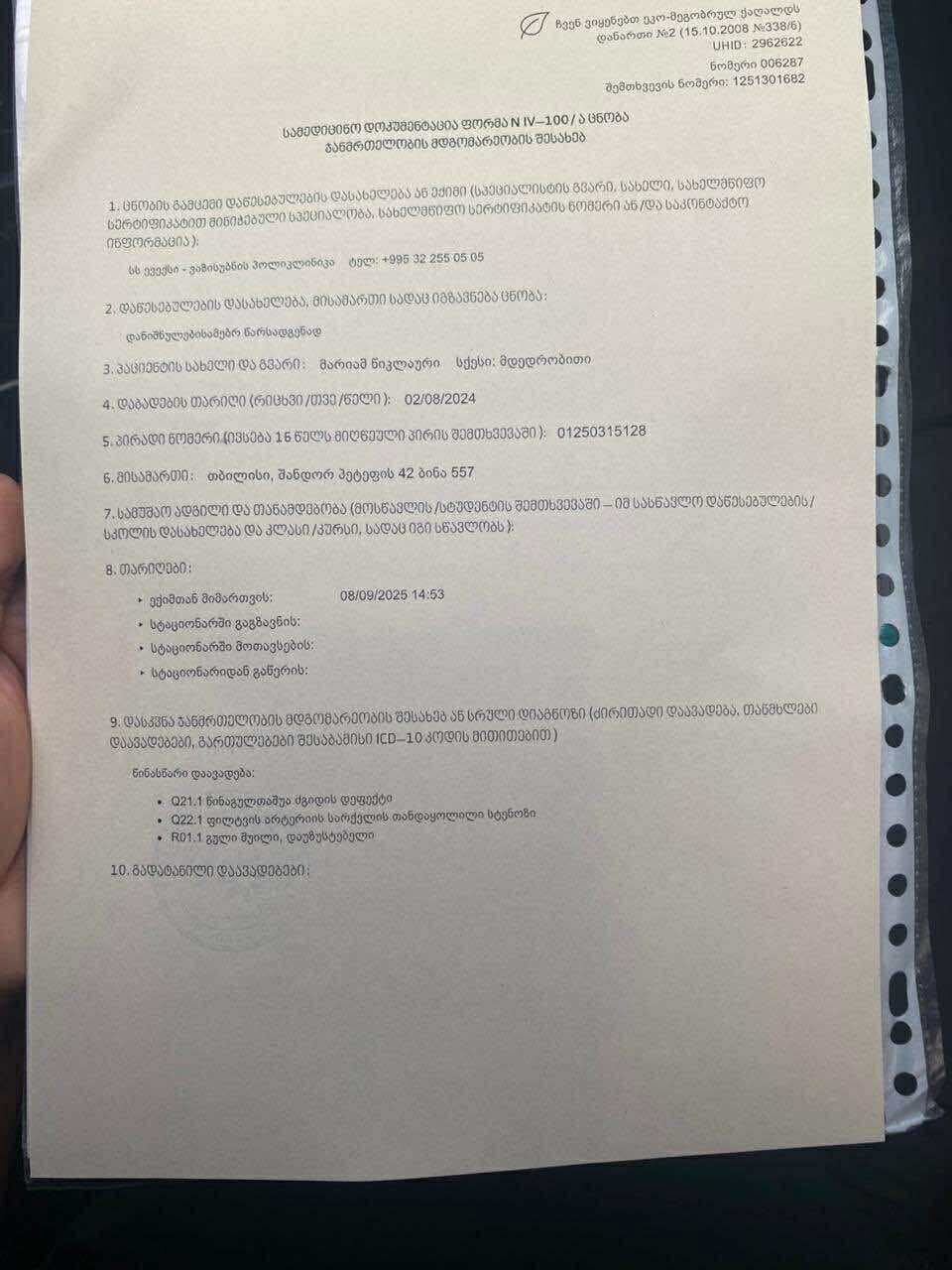 ნოტარიუსით და შეტანილი ჯანდაცვაში, საიდანაც რეაგიერება არ არის... ისევ თქვენს იმედზე ვართ 🙏🙏🙏მარიამისთვის