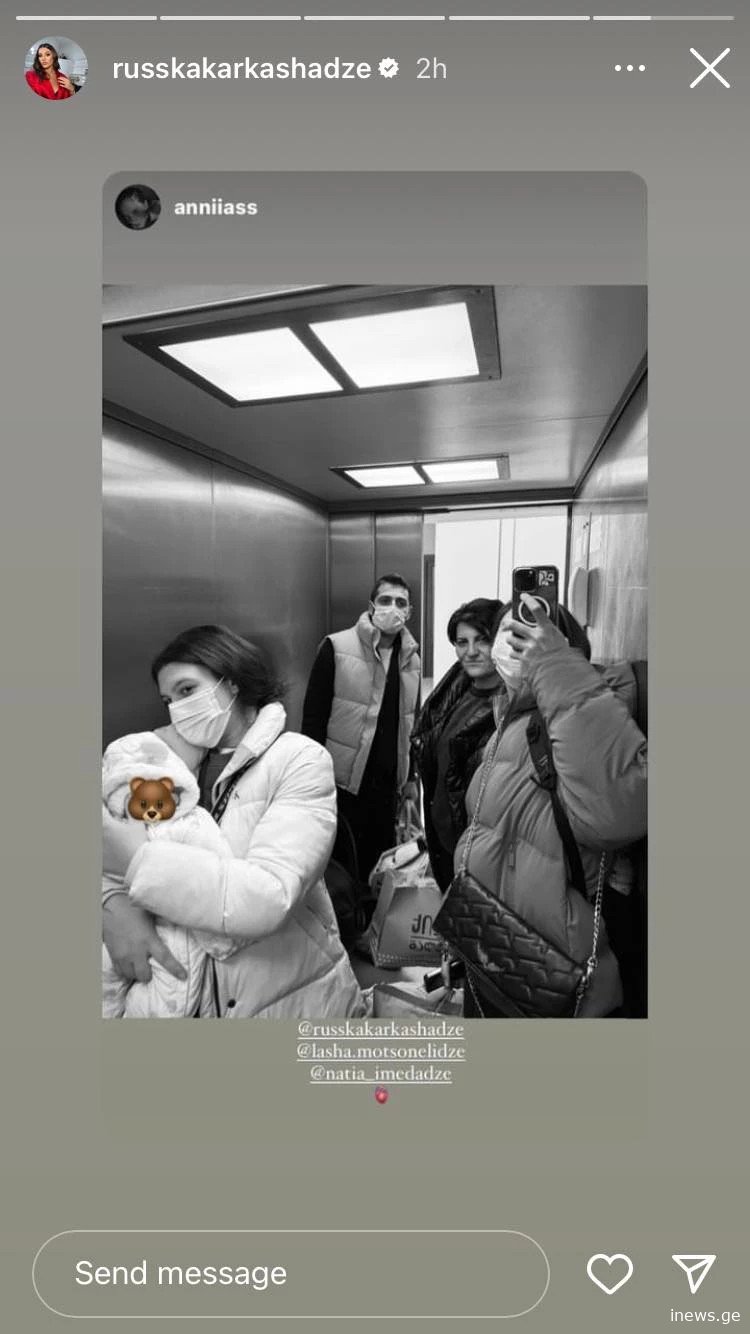 მან და ლაშა მოწონელიძემ შვილს ზუკა დაარქვეს. რამდენიმე საათის წინ მან ფოტო გამოაქვეყნა, რომელშიც კლინიკიდან იყო გამოწერილი და სახლში მიდიოდა.