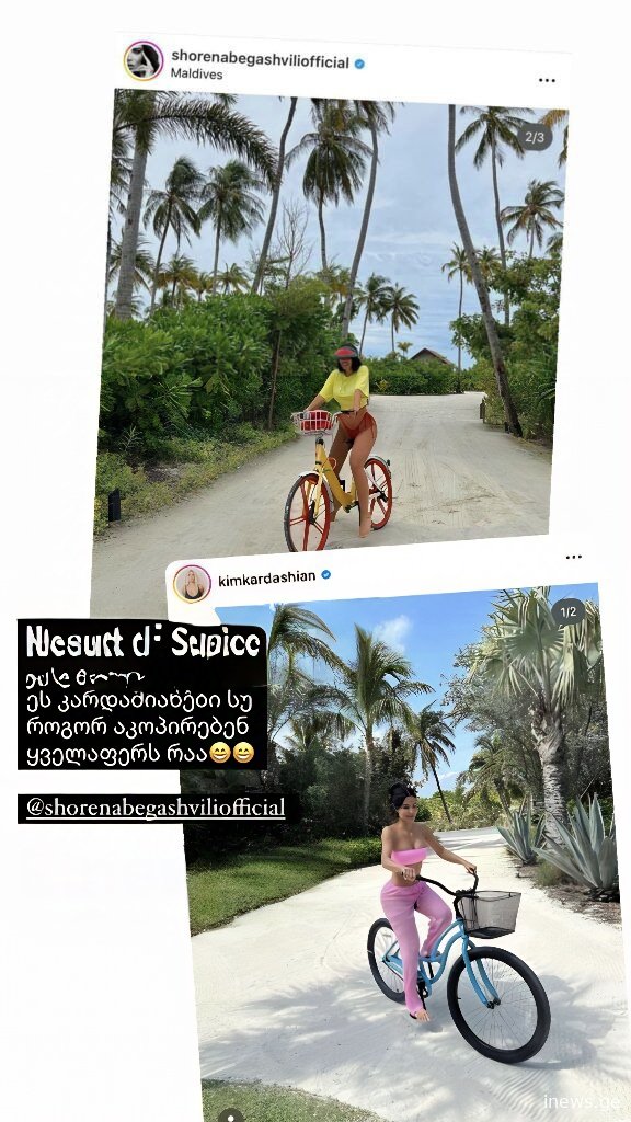 ევა ბარბაქაძე შორენა ბეგაშვილის ფოტოს აქვეყნებს, სადაც შორენას მსგავსად კიმ კარდაშიანი ველოსიპედით პლაჟზე სეირნობს.