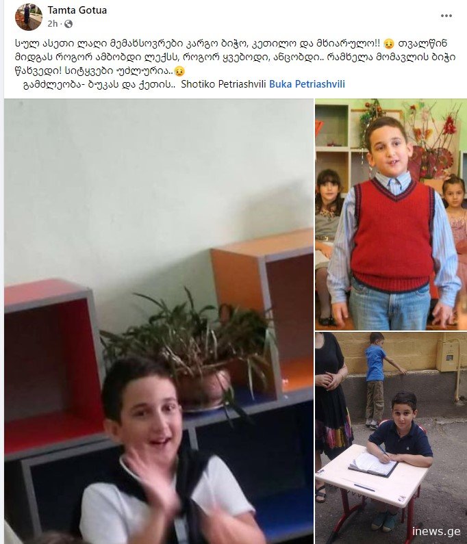მომხდარ ტრაგედიას სოციალურ ქსელში შოთიკოს მასწავლებელი ემოციური პოსტით ეხმაურება.