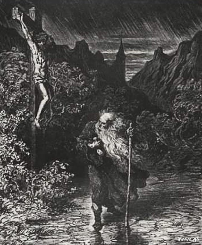 — კარგი, — ძლივს გახსნა, სიმწრისგან შეწებებული, ტუჩები ქრისტემ. — მაგრამ, შენც, მთელი ცხოვრების მანძილზე ივლი... მარადიულად იხეტიალებ მსოფლიოშ და არც დასვენება და არც სიკვდილი არ გეღირსება. — უთხრა მან აგასფერს.