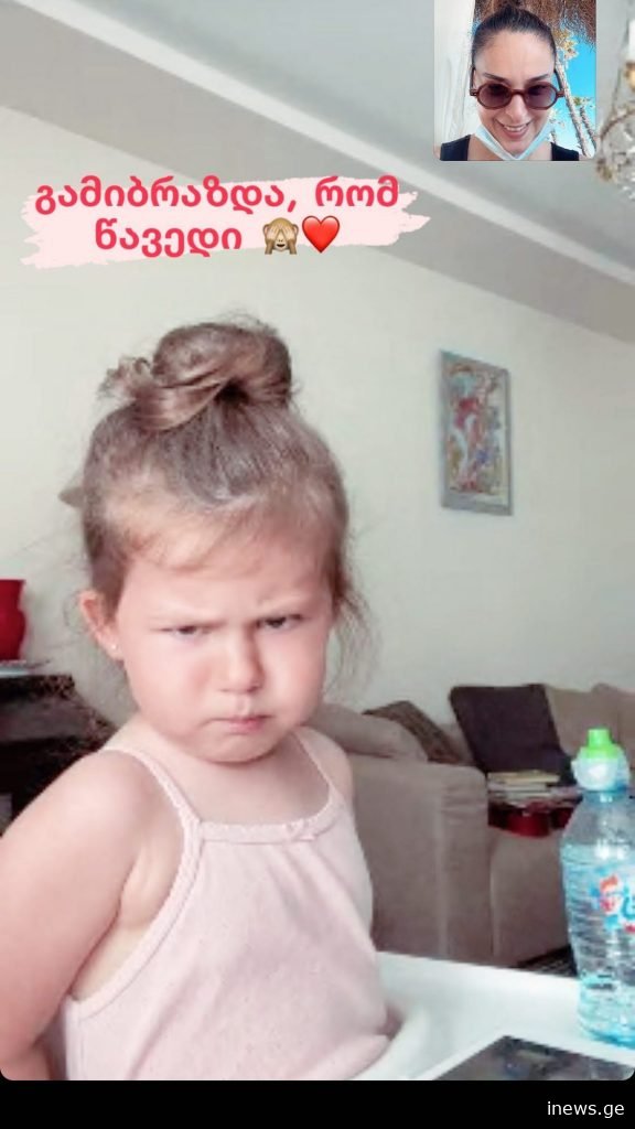“გამიბრაზდა, რომ წავედი” – ასე აწერს ელის მარია სააკაშვილის ფოტოს სოფო ნიჟარაძე. ვიდეო ზარის სქრინში ჩანს, რომ გოგონა მართლაც გაბრაზებული სახით უყურებს დედიკოს.