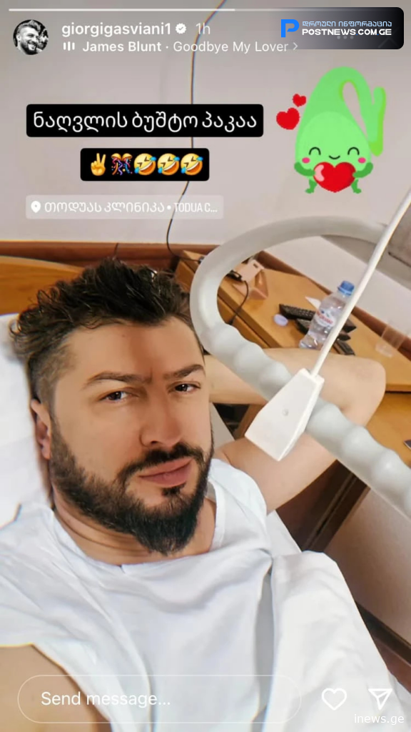 ტელეწამყვანი გიორგი გასვიანი თოდუას კლინიკიდან სოციალურ ქსელში ფოტოს აქვეყნებს. როგორც ირკვევა, გიორგი გასვიანმა ნაღვლის ბუშტის ოპერაცია გაიკეთა.