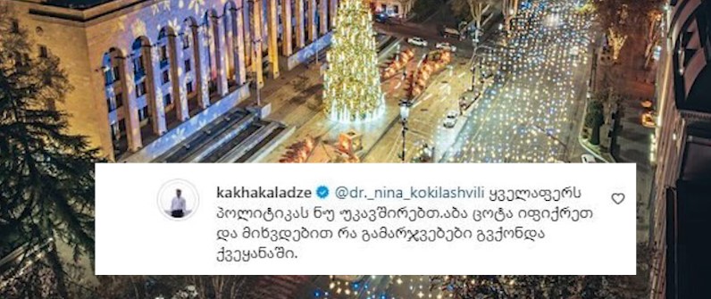 "გამარჯვებებით სავსე ქალაქი" - ამ სათაურით გამოაქვეყნა კახა კალაძემ "ინსტაგრამ" გვერდზე საახალწლოდ მორთული და განათებული თბილისის ფოტო.
