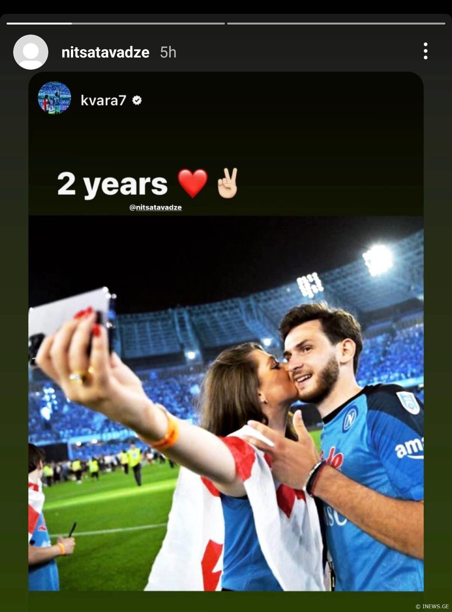 ნიცას ნსტაგრამ "სთორიდან" ვგებულობთ, რომ წყვილს, ერთად ორი წელი შეუსრულდა.