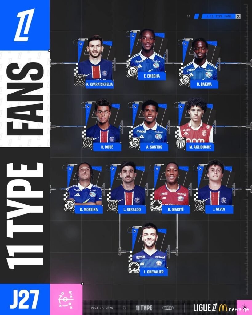 ხვიჩა კვარაცხელია საფრანგეთის ლიგა 1-ის XXVII ტურის სიმბოლურ ნაკრებში მოხვდა.